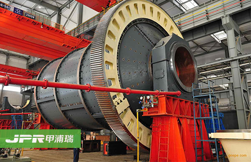 球磨机是由水平的筒体,进出料空心轴及磨头等部分组成,筒体为长的圆筒,筒内装有研磨体,筒体为钢板制造,有钢制衬板与筒体固定,研磨体一般为钢制圆球,并按不同直径和一定比例装入筒中,研磨体也可用钢段。
