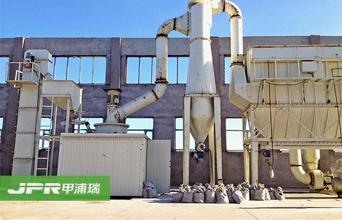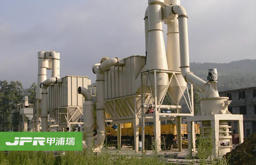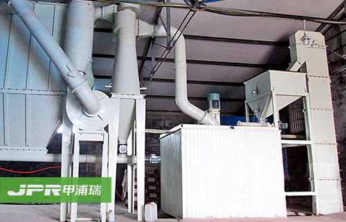 物料经颚式破碎机破碎后,由斗式提升机送至储料仓,通过电磁振动给料机把物料均匀连续地送到主机进行研磨,研磨后的粉末在鼓风机的作用下吹向选粉机进行分 选,分选后的细粉由管道送至储料仓,后经出料阀输出即为成品。整套生产线工作过程中气压为负,首先鼓风机吹出的空气伴随着细粉经管道进入储料仓上部的旋 风收集器内,由回风管道返回鼓风机,形成空气循环利用。其次,集粉器下端装有锁粉器,其作用是将外界正压气体与集粉器负压气体隔离开,大大提高了产量。再 次,主机底部残留的空气和粉尘通过管道被送到布袋除尘器进行过滤,粉尘等杂质被布袋除尘器吸附,有效地保护了环境。