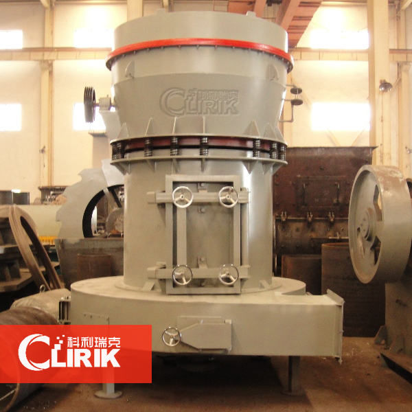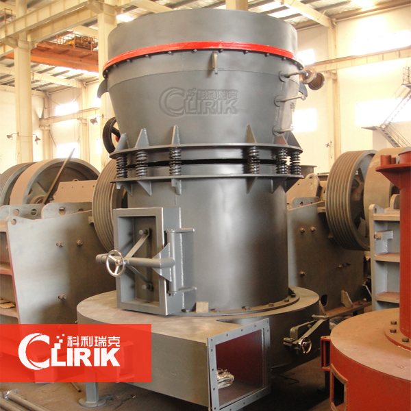 物料经颚式破碎机破碎成小于10mm的物料,经斗式提升机提升到储料斗,再由给料机定量送入主机腔进行研磨,主机腔内安装在转盘上的磨辊绕中心轴旋转,磨辊与磨辊销之间存在很大的活动间隙,在离心力的作用下磨辊水平向外摆动,从而使磨辊压紧磨环,磨辊同时绕磨辊销自转。物料通过磨辊与磨环之间的间隙,因磨辊的滚碾而达到粉碎和研磨作用,磨辊分为4层布置,物料通过第一层磨辊与磨环间为一次粉碎,接着通过第二、三、四层为二次、三次、四次粉碎,因此,物料得到充分的粉碎研磨,得到的产品细度细。磨碎的粉末由于重力作用落到底盘上,并在鼓风机的气流作用下被吹到主机上方的分级机进行分筛,细度过粗者仍落入主机内重磨,细度合乎规格者随风流入脉冲除尘器,收集后经卸料阀排出即为成品,净化后的气流经脉冲除尘器上方余风管流入鼓风机,风路是循环的,除鼓风机至研磨室为正压外,其余管路内气流均在负压下流动,室内卫生条件较好。由于物料所含水分在研磨时受热蒸发为气体,管路中各法兰接合处、进料口等处泄入的气体导致循环风路中的风量增加,这些增加的风量经鼓风机和主机之间的风箱接口排入大气。